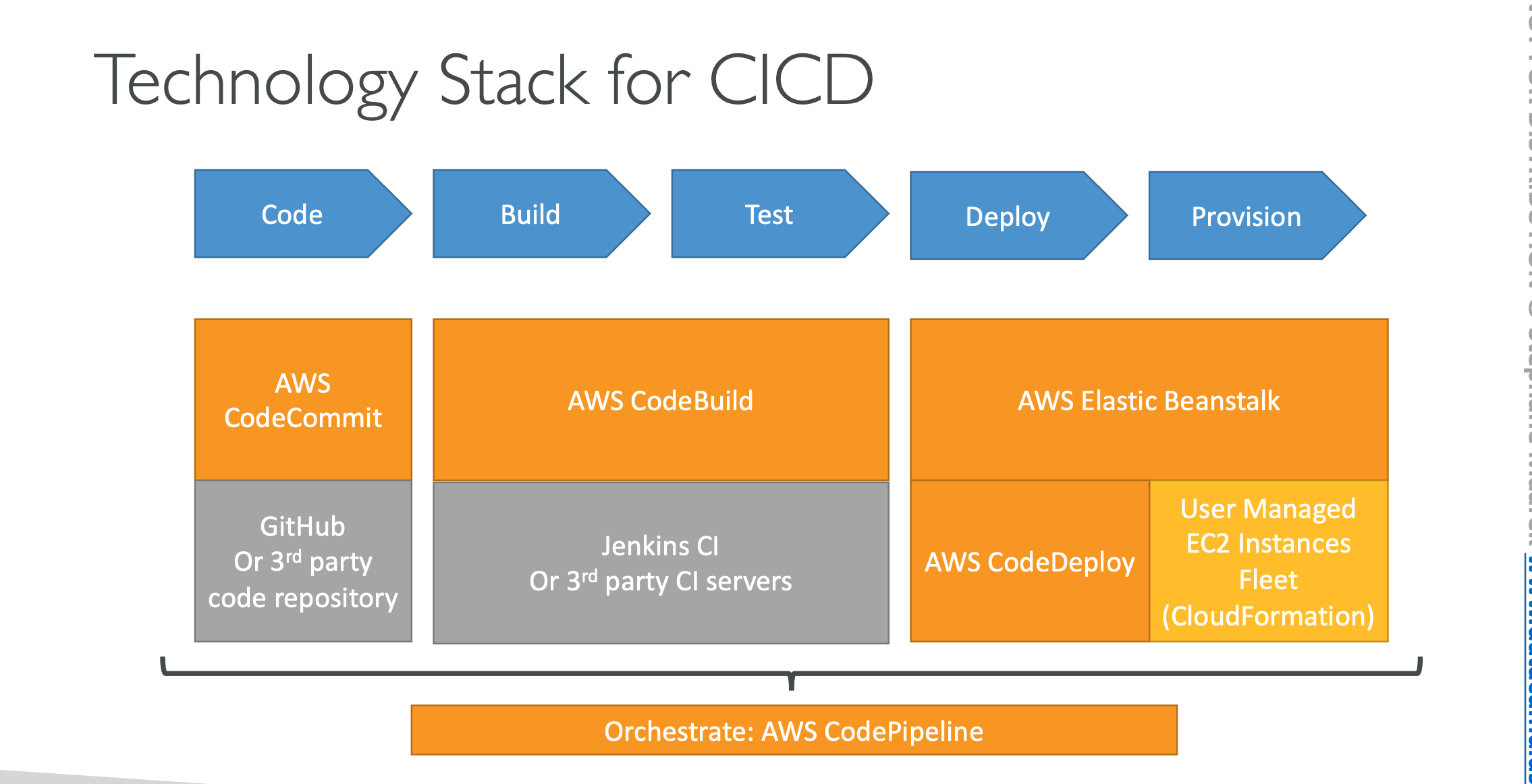 - Fully managed build service, such as Jenkins Build- Continuous scaling (no servers to manage or provision – no build queue)